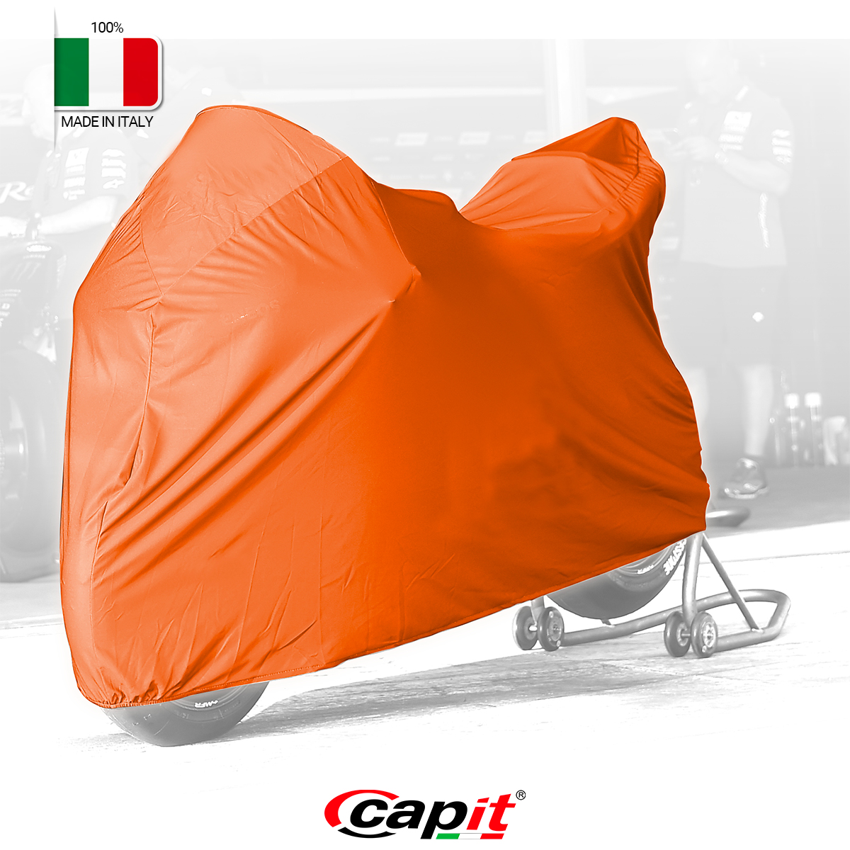Capit indoor motorcycle covers are a Made in Italy product made with high-quality materials. This practical accessory prevents the formation of condensation as it promotes moisture evaporation, thus preventing damage to the vehicle and its components.
