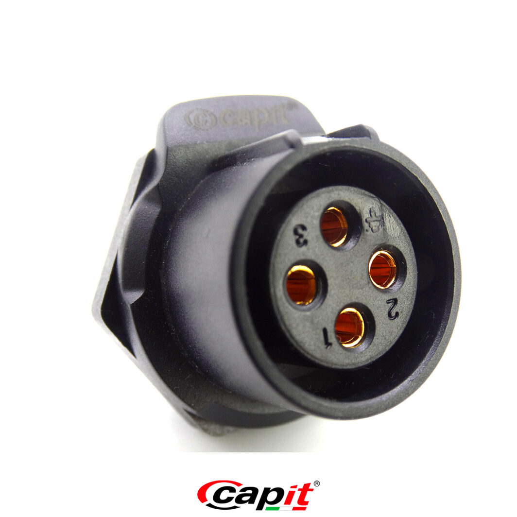 Questo connettore a pannello speciale CAPIT è realizzato in materiale plastico robusto e viene fornito come ricambio per i cavalletti mammuth e carrelli da griglia. Può essere fornito a 4 o a 7 contatti (idoneo solo per versioni Factory Su specifica).